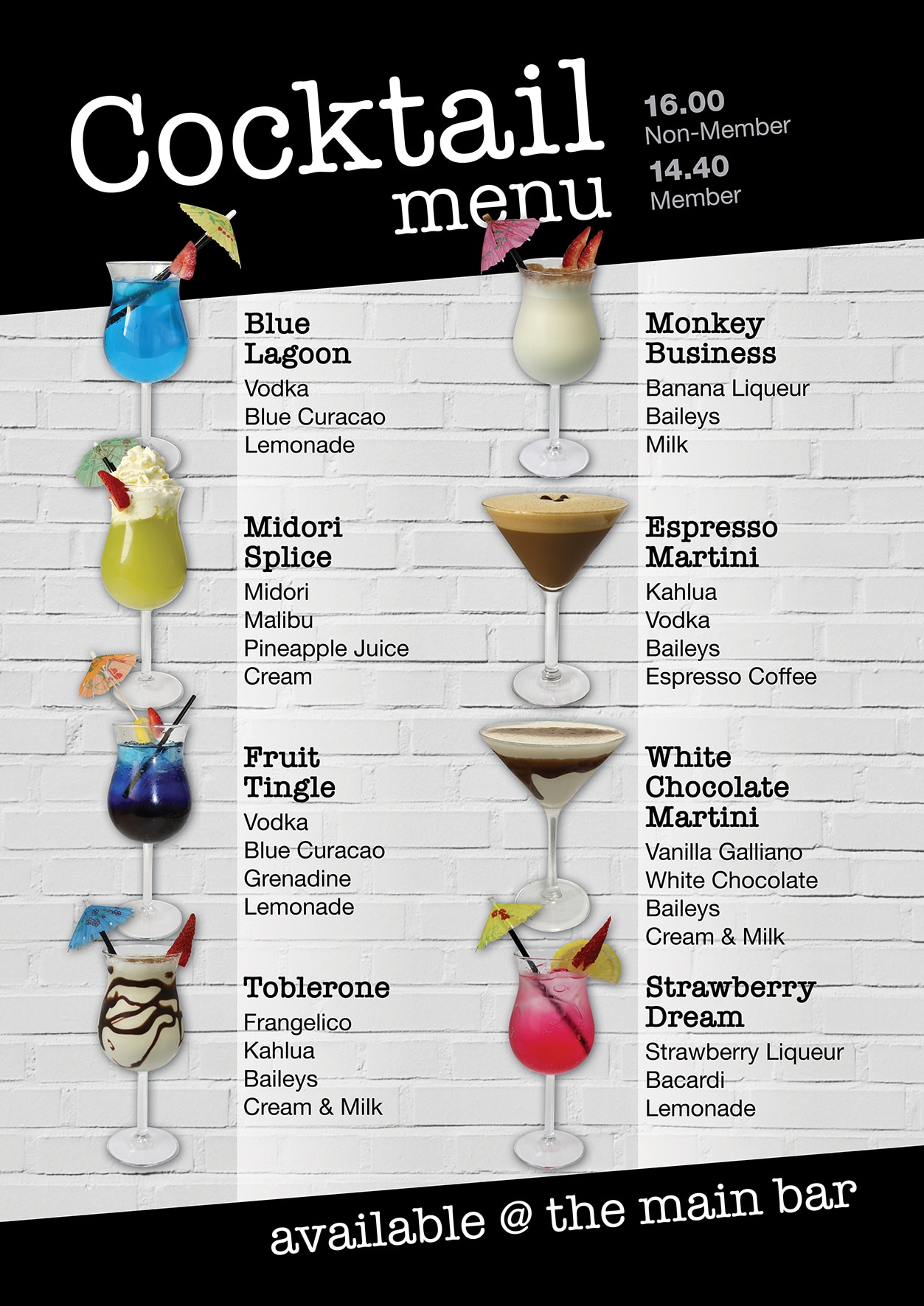 Bar Cocktail Menu